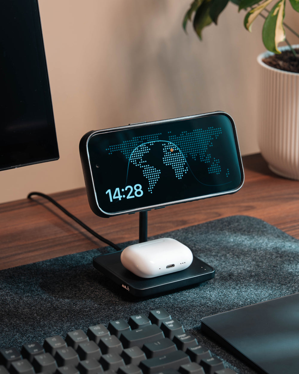 The adjustable Qi2 module tilts up to 30°, letting you find the perfect viewing angle. Charge in portrait or landscape while keeping your screen visible at all times.