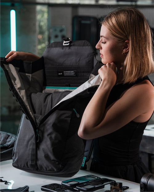 Different people have different preferences, so we reimagined our design process for this backpack. The Extreme Commuter range prioritises top-notch tech protection and functionality, with AiroFoam® impact-absorbing technology and a more structured build. In comparison, our Day Backpack embraces a minimalist, effortless aesthetic in a lighter design. Both backpacks offer seamless access to the main compartments – just in different ways.