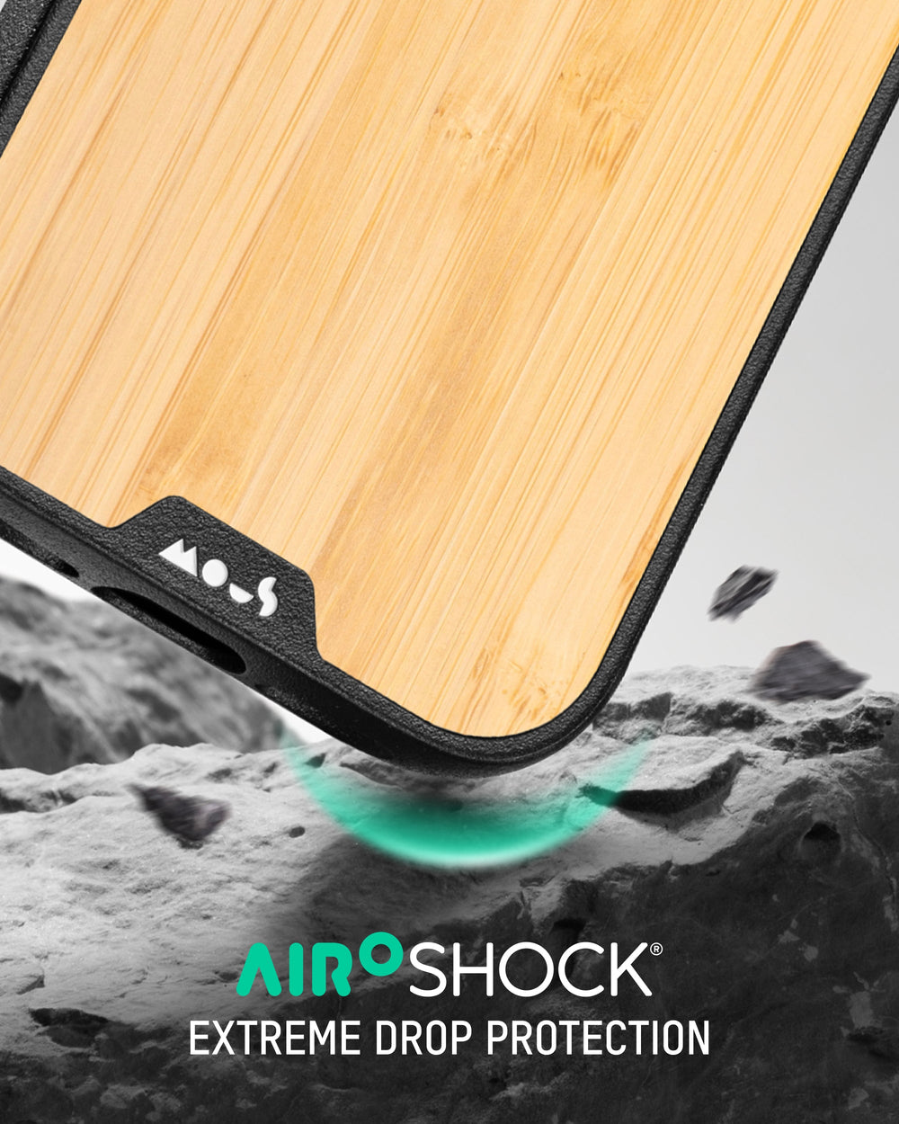 AiroShock® is a high-impact material, engineered to absorb and disperse energy during drops and shocks. Designed to slow the rate of deceleration upon impact, AiroShock® cushions your device by reducing the force it experiences when it hits the ground.