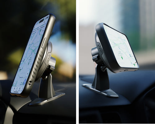 Navigate securely on-the-go with our MagSafe® compatible car mount. Attach to your dashboard for convenient, hands-free phone viewing at any angle.