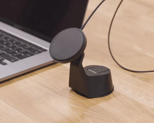 There’s a lever on the base of the suction mount which should be lifted up when you press it against your flat, shiny surface. Then push the lever down to secure it. There’s also a fastener on the mount head’s ball joint to keep it still when you’ve rotated it to your chosen angle, so make sure that’s tightened too before you plug in the cable. Finally, to attach your phone, simply connect your phone using the MagSafe® compatible magnets and you’re good to go!