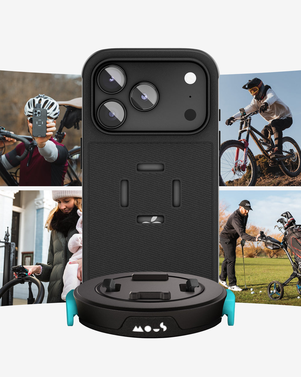 Mechanical teeth lock your phone into Mous mounts with absolute security – no slip, no rattle, even on rough terrain.