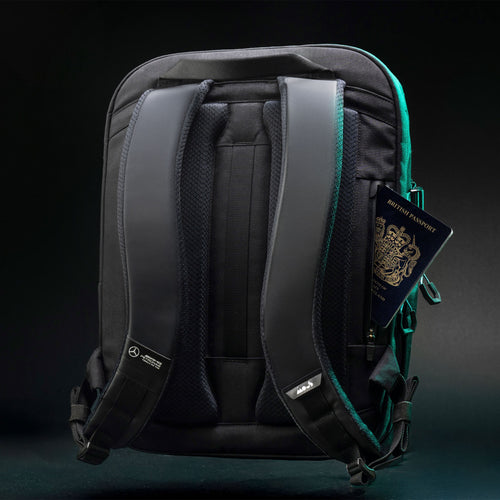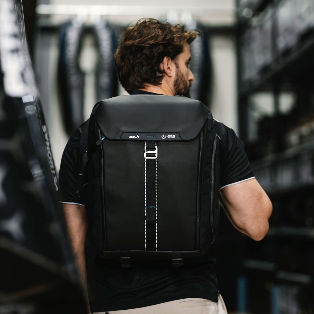 • Official team backpack, co-developed with the Mercedes-AMG PETRONAS F1 Team for elite, real-world performance.