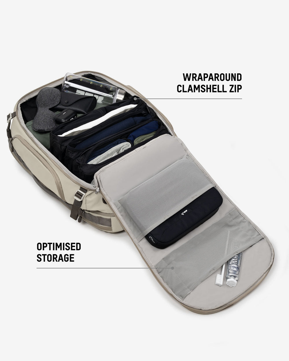• Customise with modular add-ons like a toiletry pouch, tech organiser and compression wardrobe.