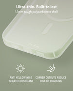 A rigid, impact-resistant material that gives Super Thin its structure and durability. It resists torsion to maintain shape on impact, while discreet relief cut-outs in the corners help flex the case during device insertion, reducing stress and the risk of cracking – a common issue with other ultra-thin cases.