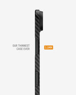 In our Super Thin case, we use moulded aramid fibre to create a rigid, impact-resistant shell that protects your phone against everyday knocks and wear without adding bulk. The result is a case that combines extreme durability with an ultra-slim, pocket-friendly profile.