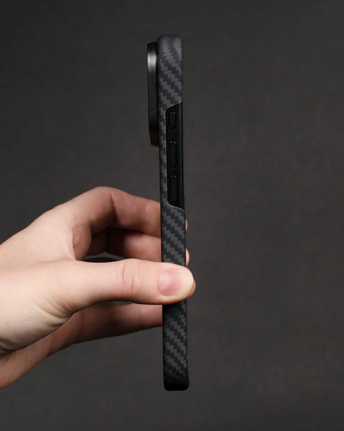 In our Super Thin case, we use moulded aramid fibre to create a rigid, impact-resistant shell that protects your phone against everyday knocks and wear without adding bulk. The result is a case that combines extreme durability with an ultra-slim, pocket-friendly profile.