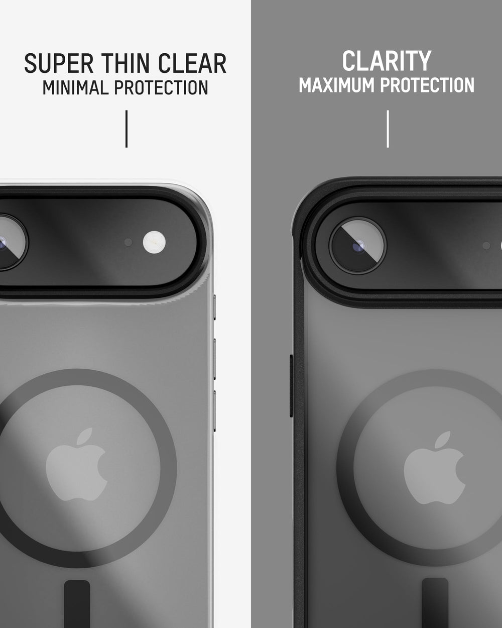 Super Thin Clear is built to prioritise thinness and clarity over maximum drop protection. Limitless and Clarity offer higher impact resistance, but this case still provides dependable everyday durability thanks to its rigid polycarbonate shell. Protective UV/anti-yellowing and scratch-resistant coatings help it stay clearer and tougher for longer.