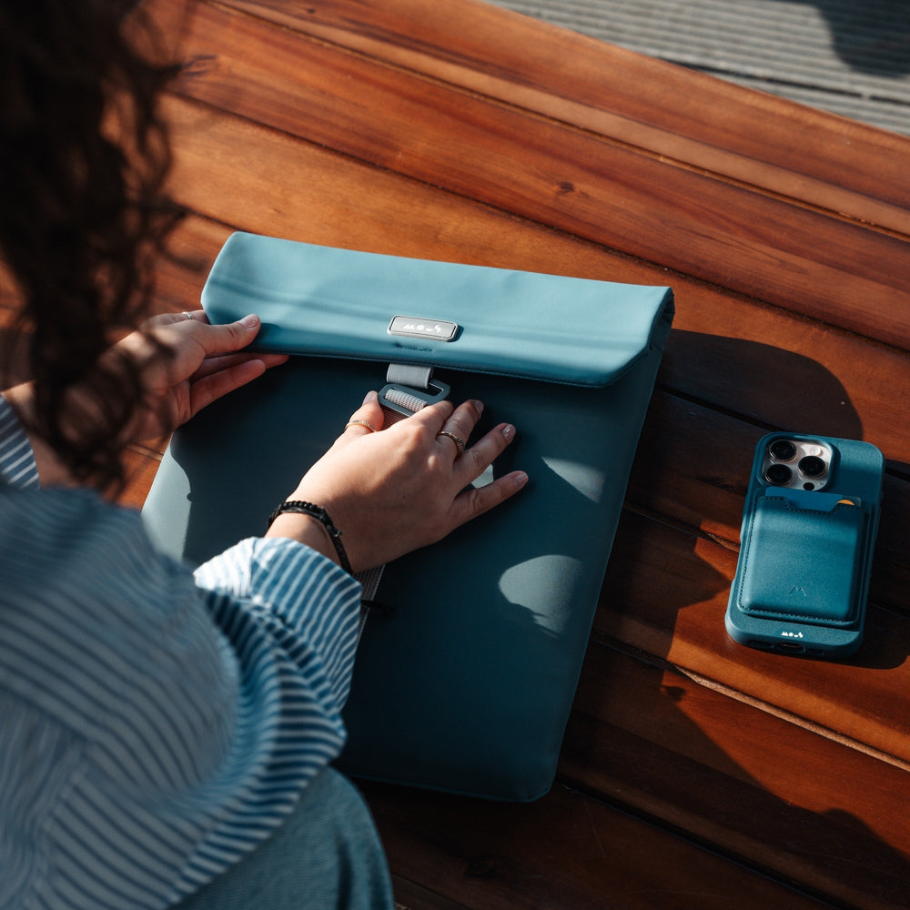 Available in Midnight, Marine, Stone and Sage, our slim and lightweight laptop sleeve complements the Mous Day Backpack or works as a standalone accessory.