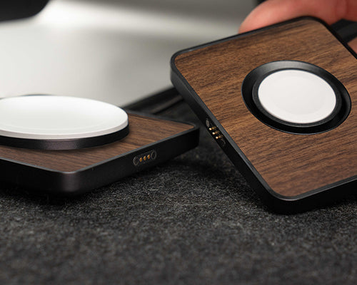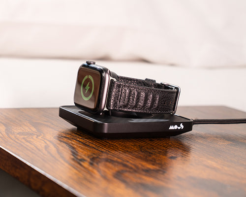 Our Elevated Apple Watch® Charger easily attaches to and detaches from our charging pad and charging station through magnetic pogo connectors – no need for extra cables or power adaptors.