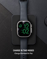 When the charging module is elevated, it allows you to transform your Apple Watch® into a stylish bedside clock by enabling NightStand Mode. Simply navigate to the settings on your Apple Watch and toggle NightStand Mode for a functional and aesthetic addition to your night-time routine.