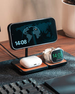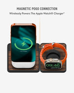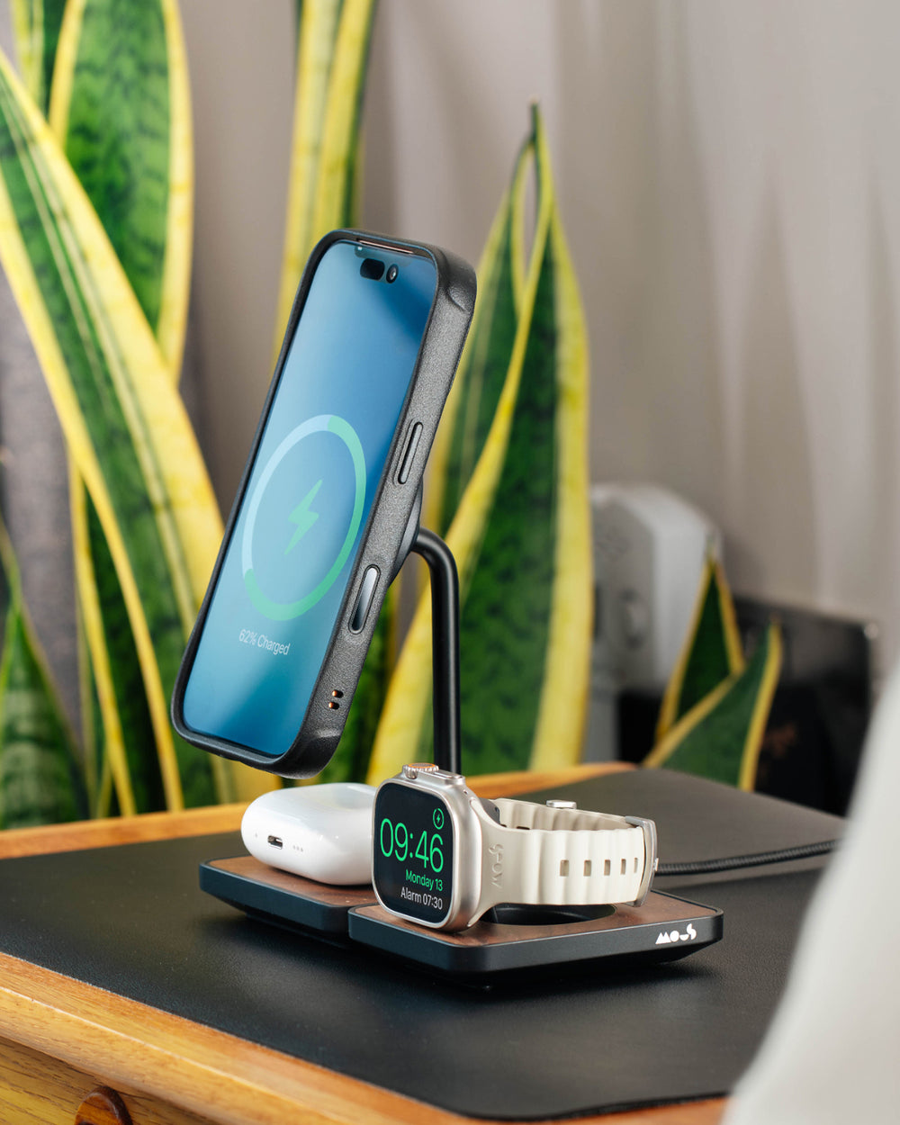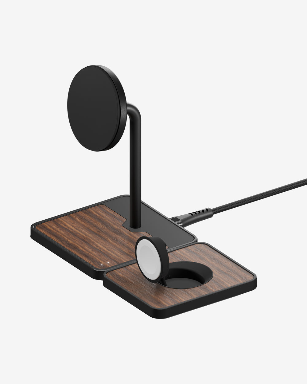 A refined wireless charging setup for iPhone and Apple Watch. Designed to power your everyday with ease at home or on the go.