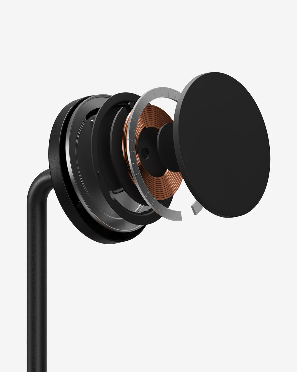 The solid aluminium alloy base gives the charger a reassuring weight and exceptional durability. It stays firmly in place for stable, one-handed lift-off, while the premium coating resists scuffs and fingerprints.