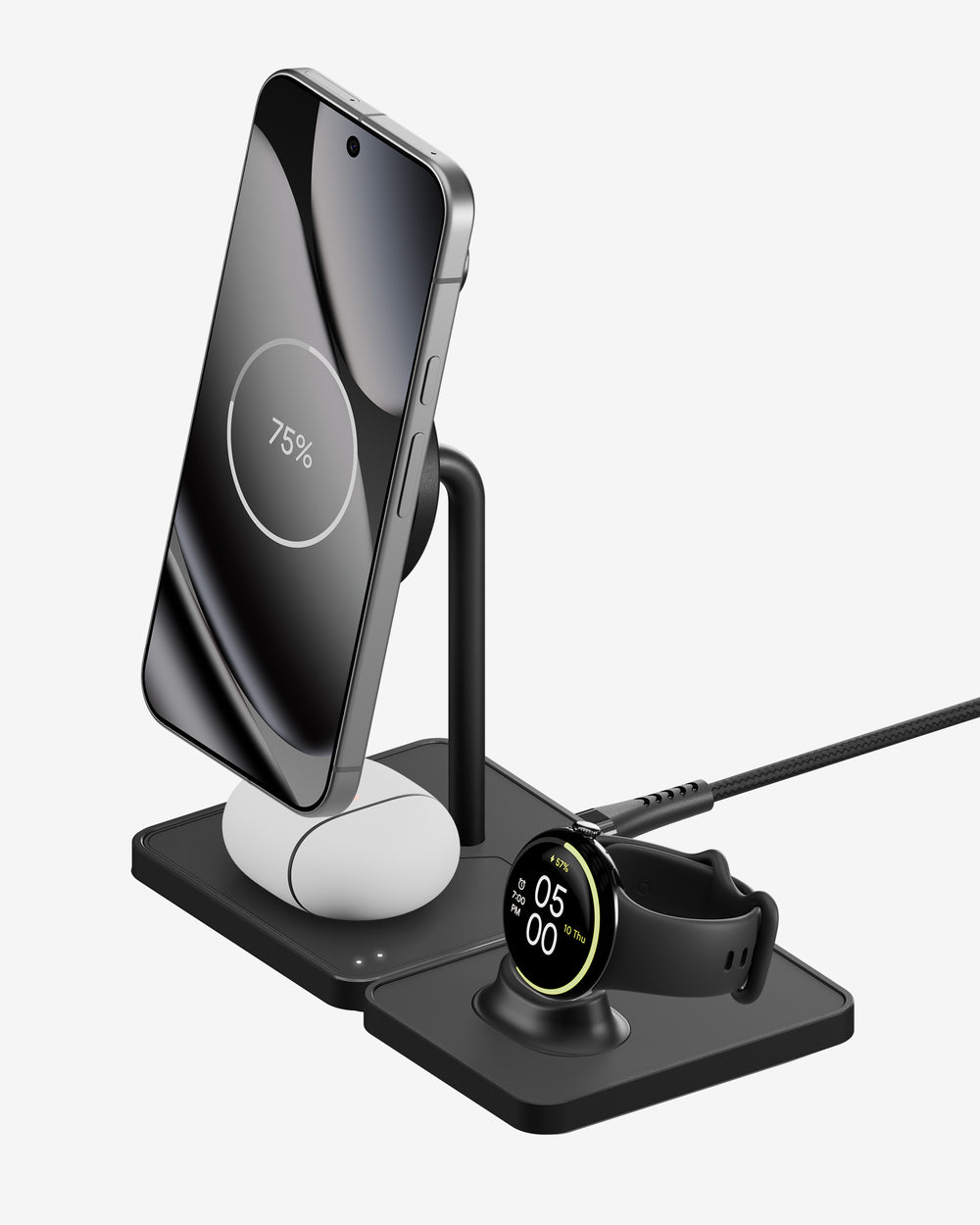 • Charges up to three devices at once (phone, earbuds and Pixel Watch) using one cable and magnetic modular connections.