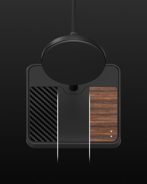 The solid aluminium alloy base gives the charger a reassuring weight and exceptional durability. It stays firmly in place for stable, one-handed lift-off, while the premium coating resists scuffs and fingerprints.