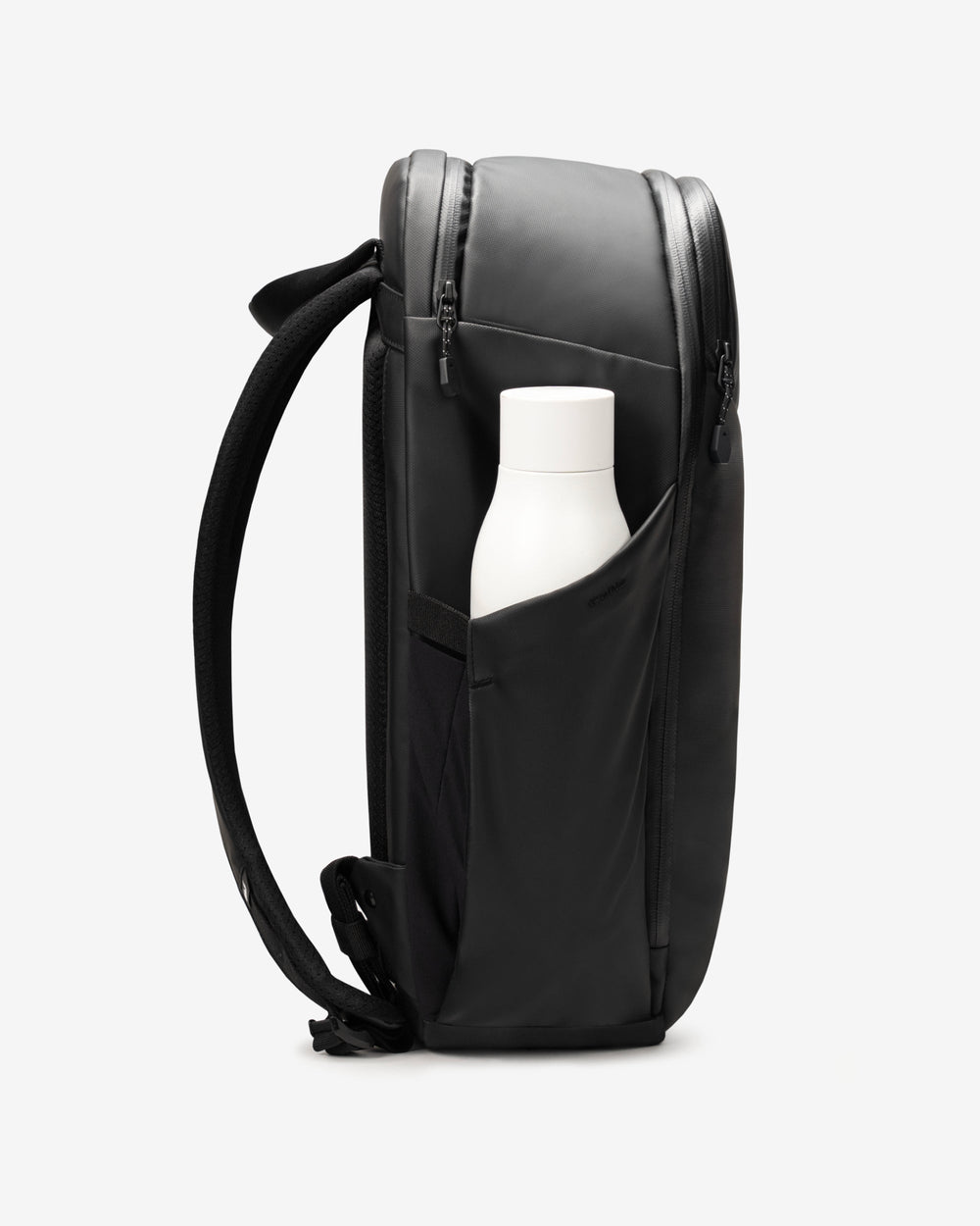 Sure thing. The external bottle pocket fits reusable bottles up to 1 litre while the 13 internal pockets and compartments keep tech, accessories and essentials organised.
